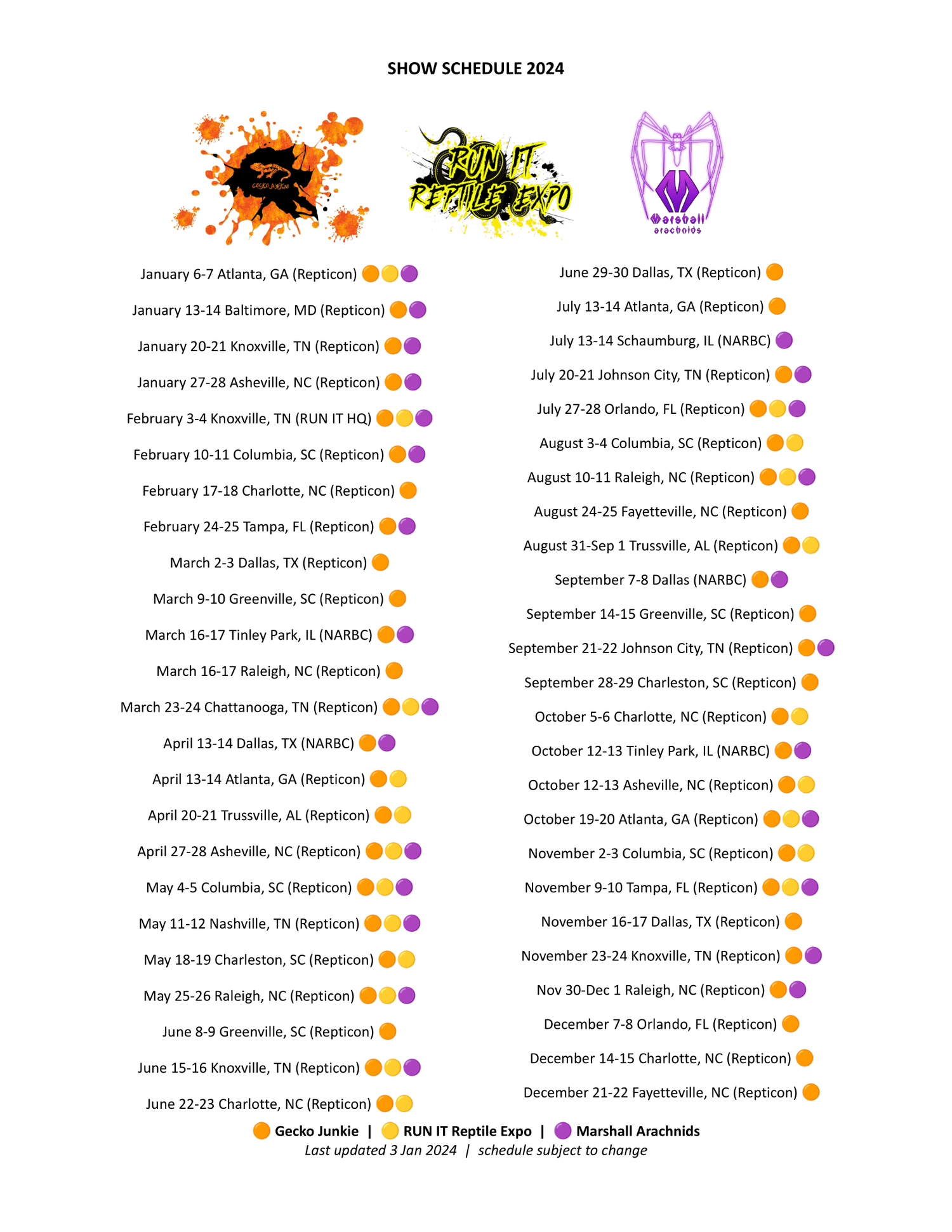 Repticon Orlando 2024 Schedule – The Orlando Pride wrapped up the 2024 NWSL Draft by selecting UCF midfielder Talia Gabarra with the 56th and final pick of the night. The daughter of former USWNT forward Carin Jennings-Gabarra played . This weekend in Orlando-area events includes the kickoff of Beer Week, a camellia show, a 5K, reptiles, antiques and more. .